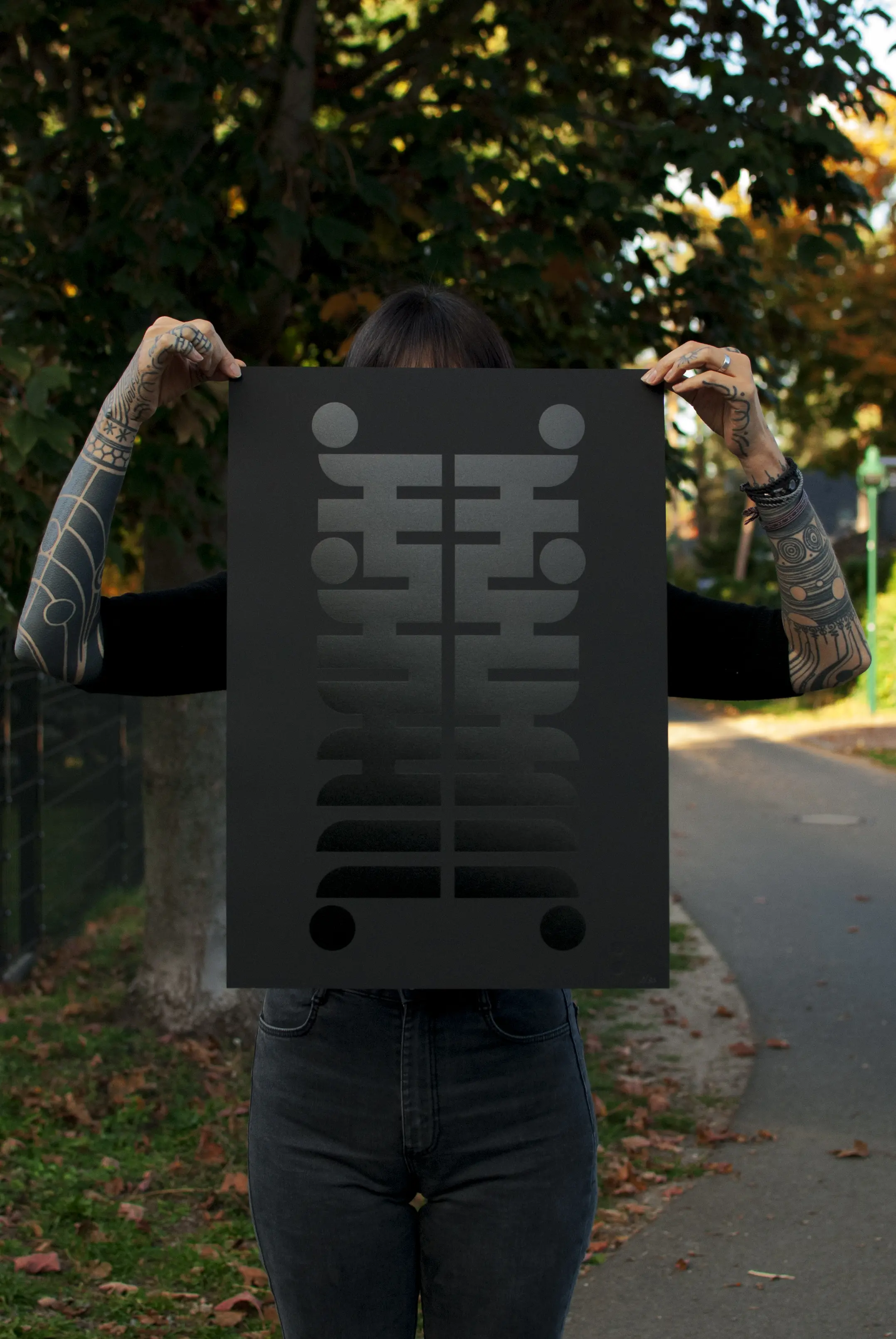 Black on black letterpress printed on Cordenons Plike 330GR paper